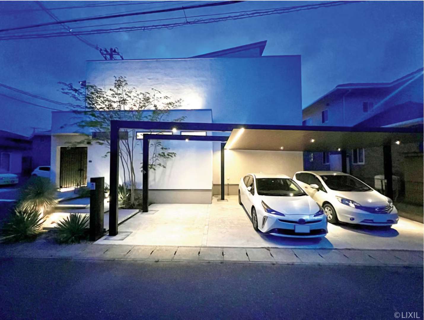 などを組み合わせた外構照明が人気です。